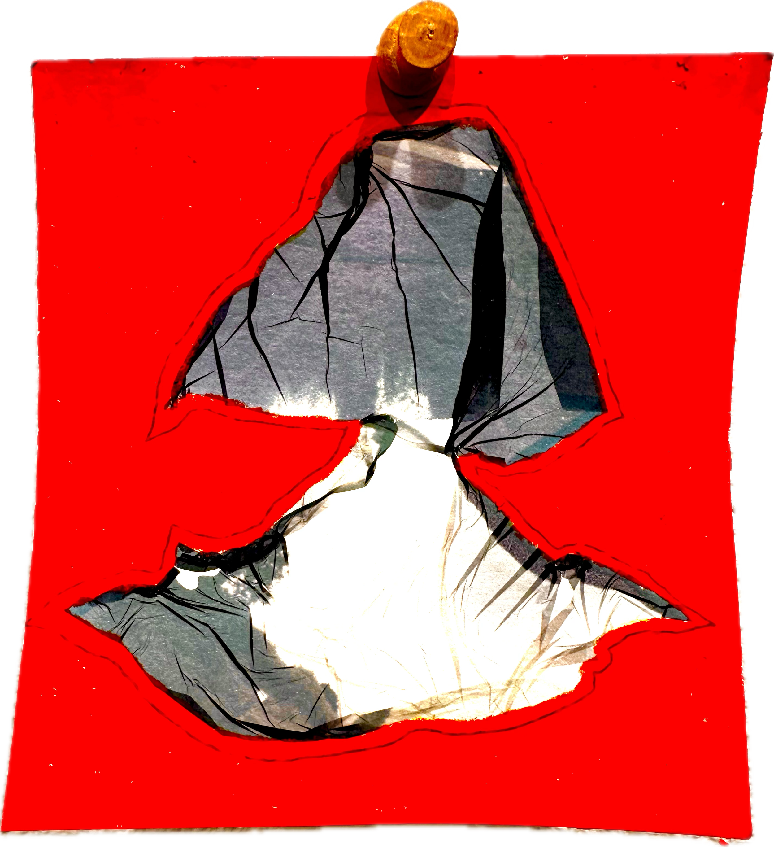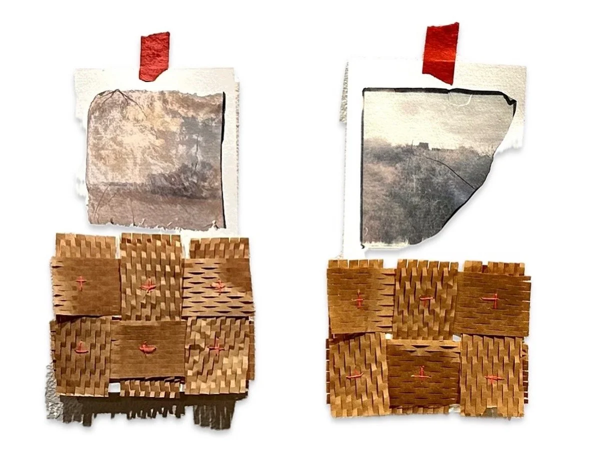 Polaroid transfer, Honeycomb packing paper, thread, on watercolor paper